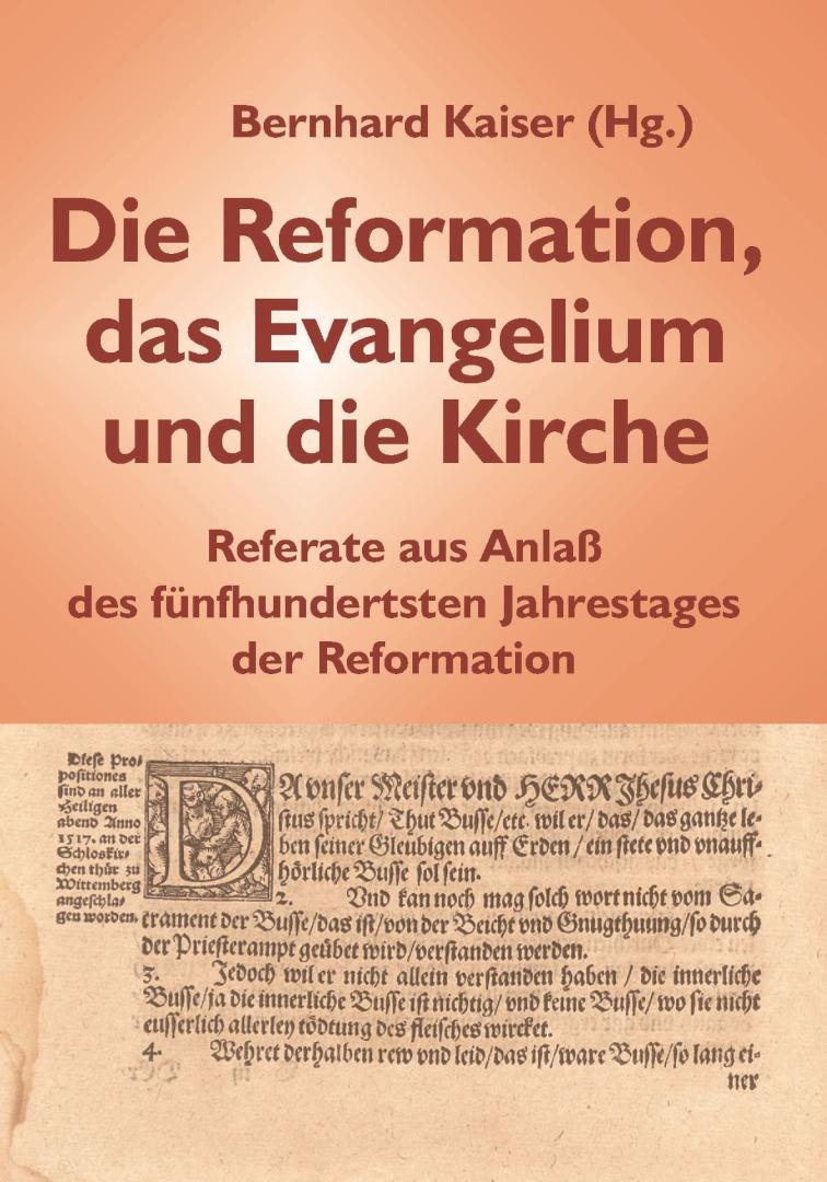 Die Reformation, das Evangelium und die Kirche. Referate aus Anlaß des fünfhundertsten Jahrestages der Reformation. Nürnberg: VTR, 2018.